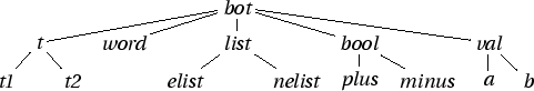 The first step in this process is determining the types of the input and output of the lexical rule. We then obtain the list of species of the input type, and the list of species of the output type. We refer to these as the input species list, and the output species list, and their members as input and output species. At this point it will be helpful to have an example to work with. Consider the type hierarchy in figure 7.8.